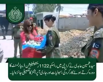 Spokesperson for the Government of Sindh, Syeda Tahseen Abidi, visited the Rescue 1122 Rehabilitation Department in Karachi to review operations, facilities, and performance. DG Rescue 1122 Brigadier Wajid Sibghatullah Mahar briefed her on emergency response and rehabilitation services. She appreciated the Rescue 1122 team’s professionalism and reaffirmed the government’s commitment, under the leadership of Murad Ali Shah and guidance of Bilawal Bhutto Zardari, to strengthening emergency services in Sindh.